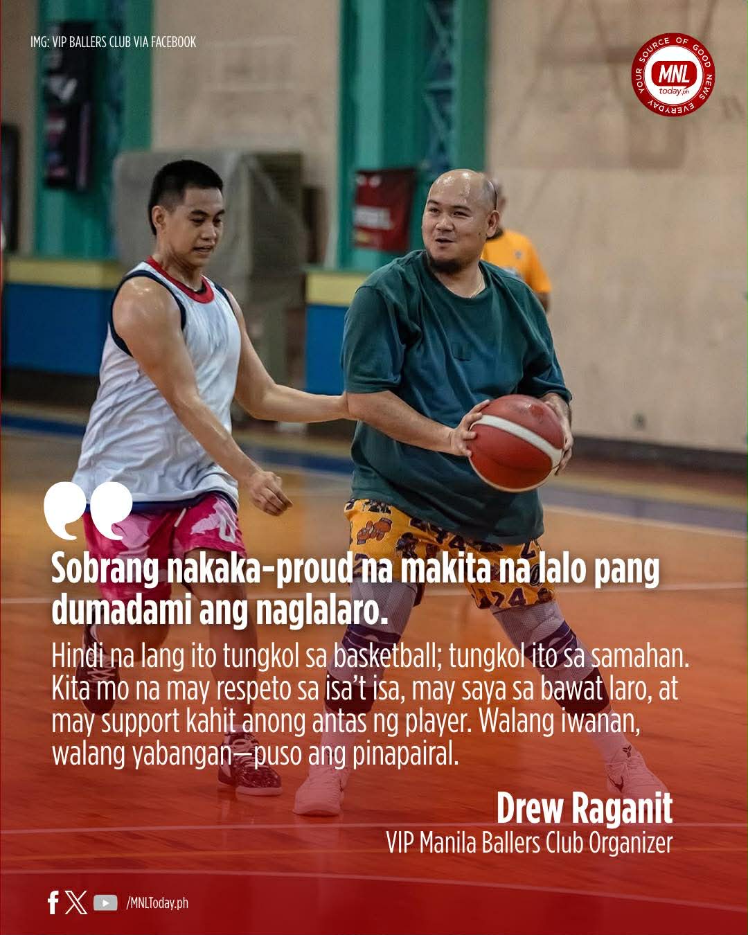 “Sa lahat ng mga ballers diyan, we are inviting you na maging part ng VIP Manila Ballers Club,” Raganit concludes. “Kung mahal mo ang basketball, gusto mo ng maayos na laro, solid na competition, at good vibes na community, welcome ka dito.”
