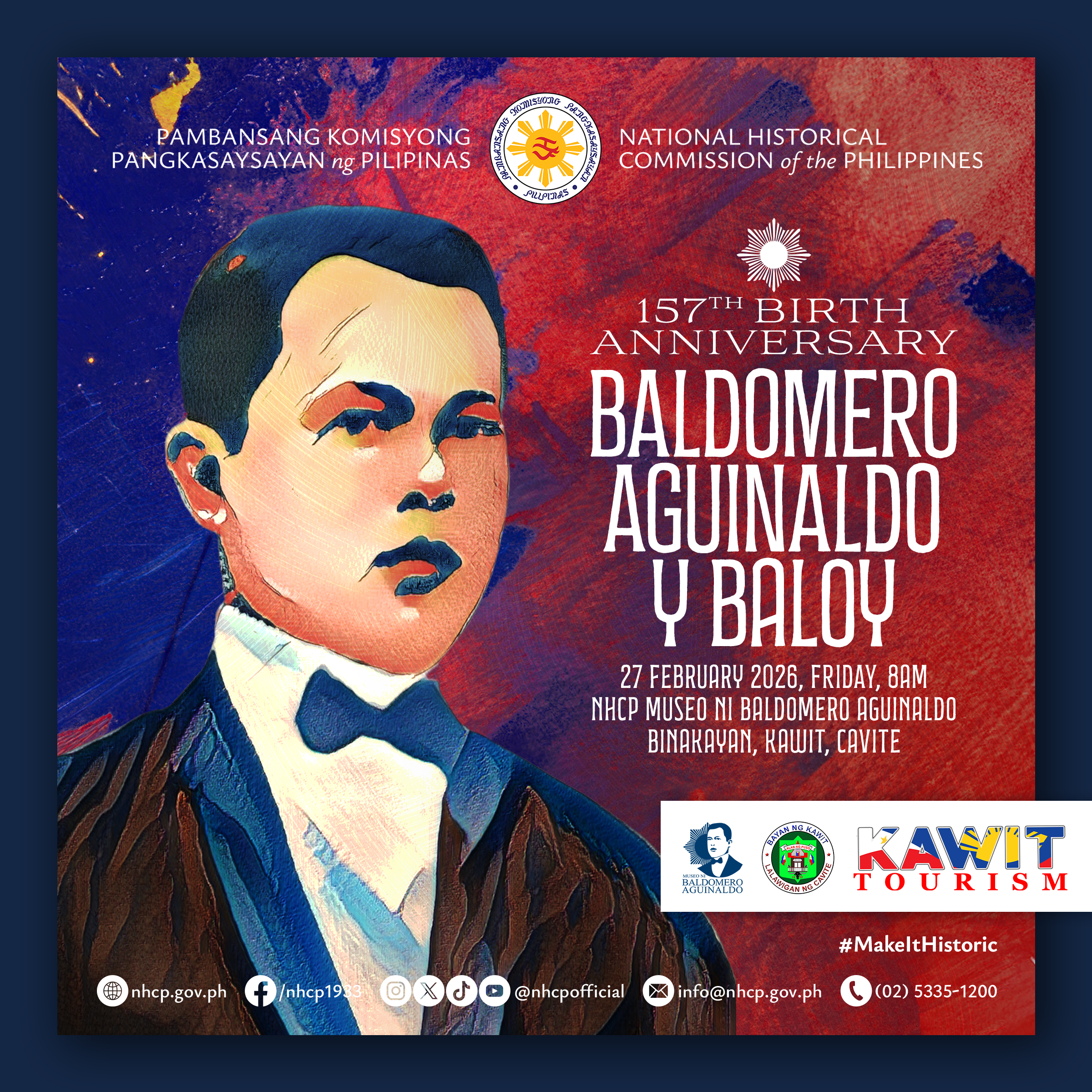 KAWIT, Cavite — The National Historical Commission of the Philippines (NHCP), in partnership with the Municipal Government of Kawit, commemorates the 157th birth anniversary of revolutionary leader General Baldomero Aguinaldo on February 27, 2026, at his shrine in Kawit, Cavite.