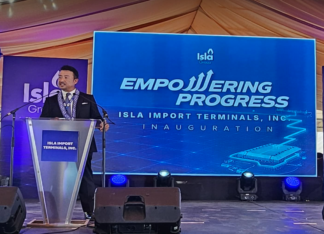 EMPOWERING THE ARCHIPELAGO. ITOCHU CORPORATION President, Energy & Chemicals Company, Masaya Tanaka speaks on the global and local significance of the newly inaugurated Isla Import Terminals, Inc. (IITI) in Batangas City.